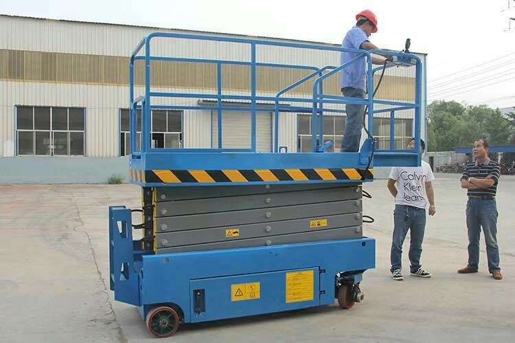 自行走升降机能够在不同工作状态下,不需外接电源,不需外来动力牵引即可升降自如,而设备的行走转向也只需一人便可完成