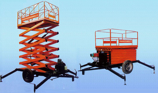 牵引式液压升降机牵引式:产品代表有二轮牵引式和四轮牵引式。采用外接动力做牵引,可利用拖车或柴油机做牵引动力进行移动并可做液压升降动力,该系列升降机具有移动灵活,升降平稳,载重量大,操作方便等特点,广泛用于工厂、粮库、机场、加油站、机关、码头、野外电力、路灯维护及建筑装修等各种行业。