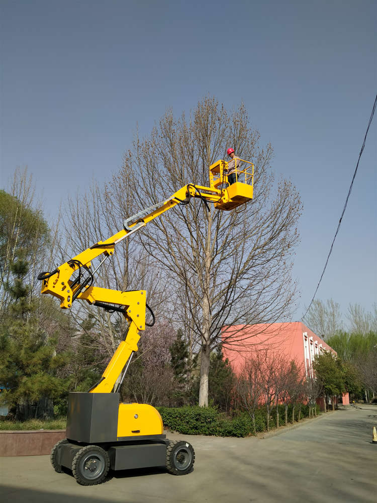 曲臂式液压升降机广泛用于市政、电力、路灯、公路、码头、广告、园林、小区物业、厂矿企业车间等行业范围升降作业。可跨越障碍进行高空作业,平台升降到任何位置时,均可边行走边作业,结构紧凑,转向灵活,其地盘的宽度可保证设备进入狭窄的通道及拥挤的工作区域。备用动力装置,可操作工作平台复位,方便的运输方式,可被牵引到任何地方。易于识别的操作面板,多重的机械,电气及液压安全保护,先进的一体化的液压电器集成系统。