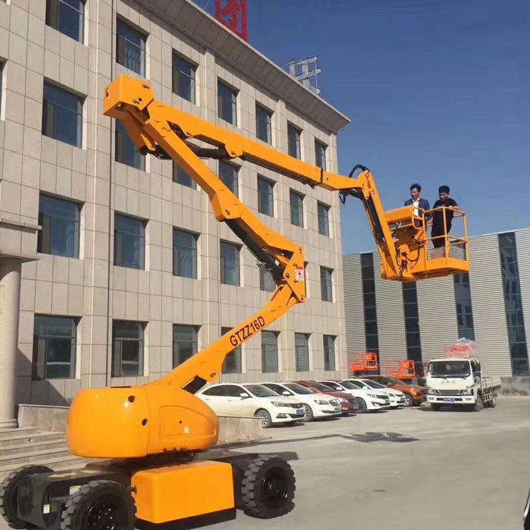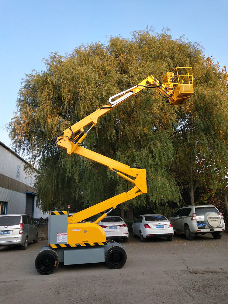 曲臂式升降机具有操作简单,使用方便,作业面大,特别是能够悬伸作业,跨越一定的障碍物或在一处升降,可进行大范围多点升降作业的特点,极大地提高了工作效率。